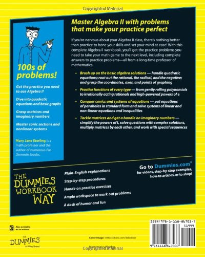 To succeed in Algebra II, start practicing now Algebra II builds on your Algebra I skills to prepare you for trigonometry, calculus, and a of myriad STEM topics. Working through practice problems helps students better ingest and retain lesson content, creating a solid foundation to build on for future success. Algebra II Workbook For Dummies, 2nd Edition helps you learn Algebra II by doing Algebra II. Author and math professor Mary Jane Sterling walks you through the entire course, showing you how to approach and solve the problems you encounter in class. You′ll begin by refreshing your Algebra I skills, because you′ll need a strong foundation to build upon. From there, you′ll work through practice problems to clarify concepts and improve understanding and retention. Revisit quadratic equations, inequalities, radicals, and basic graphs Master quadratic, exponential, and logarithmic functions Tackle conic sections, as well as linear and nonlinear systems Grasp the concepts of matrices, sequences, and imaginary numbers Algebra II Workbook For Dummies, 2nd Edition includes sections on graphing and special sequences to familiarize you with the key concepts that will follow you to trigonometry and beyond. Don′t waste any time getting started. Algebra II Workbook For Dummies, 2nd Edition is your complete guide to success.