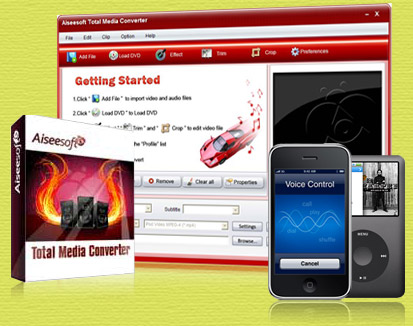 Aiseesoft Total Media Converter is really the all-in-one media converter which is bundled of DVD converter, video converter for multimedia users to convert video/audio files, rip DVD to any other video/audio formats like MPEG, AVI, MOV, FLV, SWF, MP3, AAC and any others.