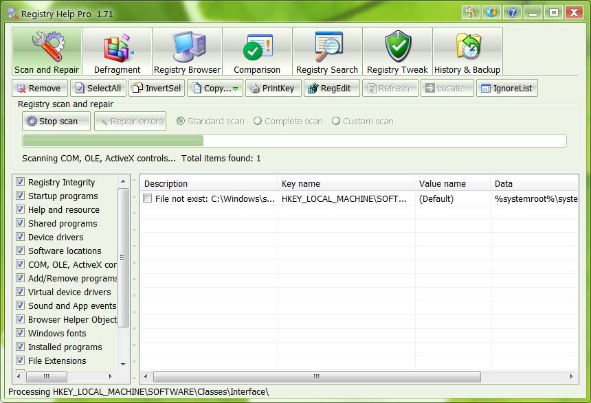 # FREE registry scan - Registry Help provides three types of scan: standard scan, complete scan and custom scan.