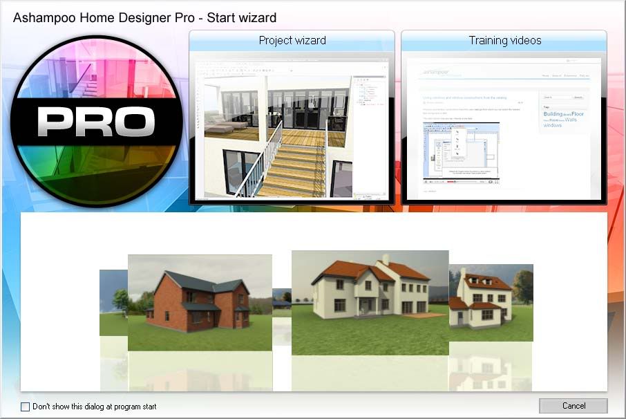 The new start wizard offers different options to get started with a project. You can for example watch training videos first, or open a sample project and edit it. The fastest and easiest way to start a project is to use the project wizard. In two easy steps you can adjust basic settings for your project and draw the outline of a floor or room on the basis of different shapes.