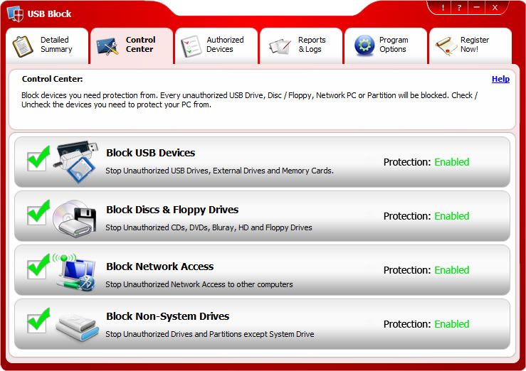 USB Block is a data leak prevention tool that prevents leakage and copy of your data to USB Drives, External Drives, CDs/DVDs or other such portable devices. Once installed, USB Block lets you block all such drives and devices that do not belong to you. With USB Block, you can share your PC with anyone without fear of data theft. USB Block also lets you create a list of devices and drives you authorize with a password so that only your USB drives or CDs can be accessed on your computer.