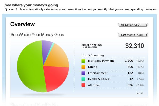 Quicken Essentials for Mac automatically categorizes your transactions to show you exactly what you've been spending money on.