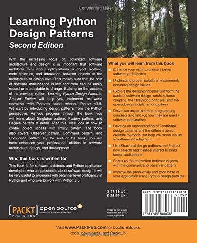 Building on the success of the previous edition, Learning Python Design Patterns, Second Edition will help you implement real-world scenarios with Python's latest release, Python v3.5.