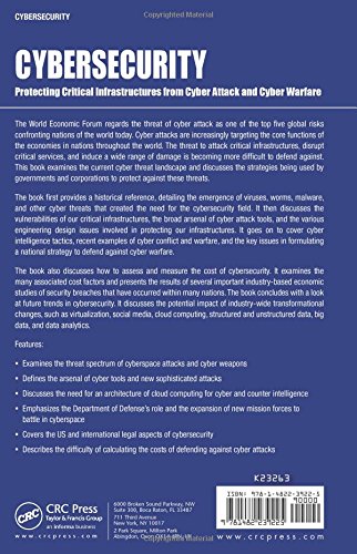 The World Economic Forum regards the threat of cyber attack as one of the top five global risks confronting nations of the world today. Cyber attacks are increasingly targeting the core functions of the economies in nations throughout the world. The threat to attack critical infrastructures, disrupt critical services, and induce a wide range of damage is becoming more difficult to defend against. Cybersecurity: Protecting Critical Infrastructures from Cyber Attack and Cyber Warfare examines the current cyber threat landscape and discusses the strategies being used by governments and corporations to protect against these threats.