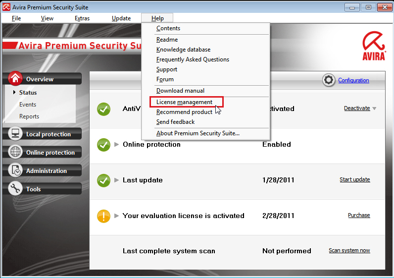 3. Click on "Help → License management”.