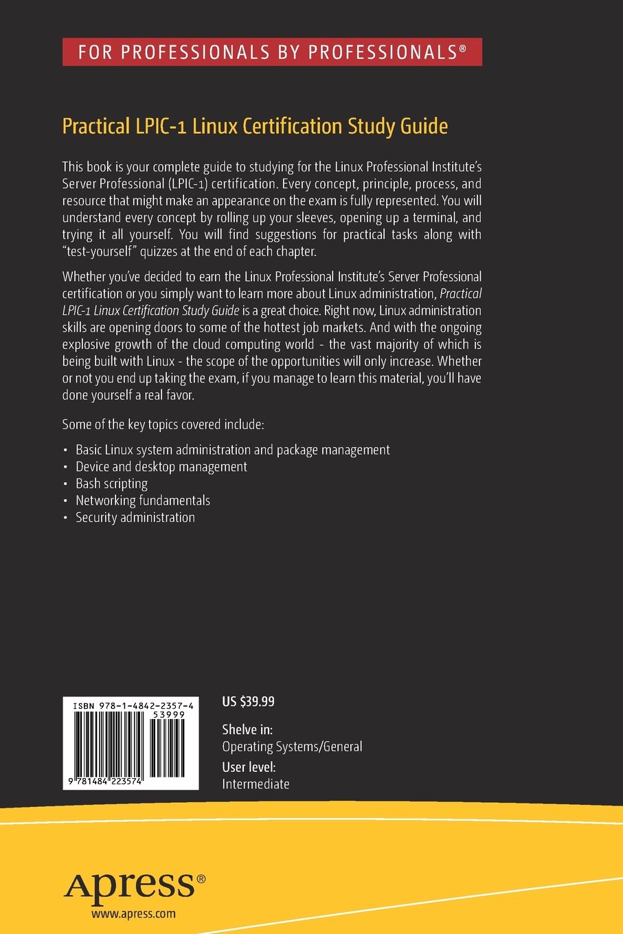 Whether you've decided to earn the Linux Professional Institute's Server Professional certification or you simply want to learn more about Linux administration, this book is a great choice. Right now, Linux administration skills are opening doors to some of the hottest job markets. And with the ongoing explosive growth of the cloud computing world - the vast majority of which is being built with Linux - the scope of the opportunities will only increase. Whether or not you end up taking the exam, if you manage to learn this material, you'll have done yourself a real favor.