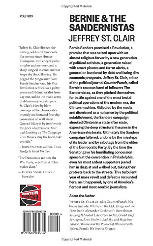 Bernie Sanders promised a Revolution, a promise that was seized upon with an almost religious fervor by a new generation of political activists, a generation raised with smart phones and terror alerts, a generation burdened by debt and facing dim economic prospects. Jeffrey St. Clair, editor of the political journal CounterPunch, called Bernie’s raucous band of followers The Sandernistas, as they pitched themselves for battle against one of the most brutal political operations of the modern era, the Clinton machine. Ridiculed by the media and dismissed as a nuisance by the political establishment, the Sanders campaign shocked Clinton in a state after state, exposing the deep structural fissures in the American electorate. Ultimately the Sanders campaign faltered, undone by the missteps of its leader and by sabotage from the elites of the Democratic Party. By the time the Senator gave his humiliating concession speech at the convention in Philadelphia, even his most ardent supporters jeered him in disgust and walked out, taking their protests back to the streets. This turbulent year of mass revolt and defeat is recounted here, as it happened, by one of America’s fiercest and funniest journalists.
