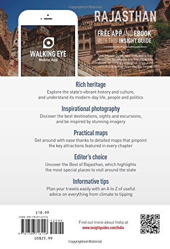 Inside Insight Guide Rajasthan: A fully-overhauled, major new edition by our expert Rajasthan author. Stunning new photography that brings this breathtaking region and its people to life. Highlights of the state's top attractions, including tigers at Ranthambore National Park and the camel fair at Pushkar in our Best of Rajasthan. Descriptive region-by-region accounts cover the whole state from the pink city of Jaipur to the romantic white city of Udaipur and the golden desert city of Jaisalmer. Detailed, high-quality maps throughout will help you get around and travel tips give you all the essential information for planning a memorable trip.