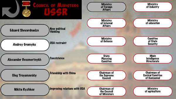 Comrades! Brothers and sisters!In this significant day I want to tell all workers of the world, that our expectations have come true and as The Great Revolution was a perfect Party creation so a proletarian game Crisis in Kremlin is an outstanding achievement of this great organization! Because now completely every person, even a cook, can rule the state! And this is our merit, comrades, because only we bring protection and prosperity and we must overtake the rotting West. And so every person must as soon as possible master this skill by opening Crisis in Kremlin and bring the started to an end to the 5-year plan of new millennium!In the game every comrade will have to solve important political and economic, but historically accurate, interesting and exciting questions and tasks. On your decisions it will depend, what the USSR will be by the end of the year 1991 (and even a bit further) empty words, which everybody interpret in dark colors, a superpower or the new pillar of democracy, though you can try any other political mechanic, you like.However,don forget that we are watching you closely and honestly hope that you will not betray your labor Motherland!The Actual GameCrisis in the Kremlin is a game set in the Perestroyka era, where you are set to reign over the Soviet Union during this harsh period and lead it to a bright future by anyway you like!Do you think democracy and the free market are salvation? Or maybe Democratic Socialism? Maybe Christian Conservatism? Utopian Communism? Or, perhaps dictatorships and deification are the way to go! All possibilites are open!Here you can- Start Perestroyka and survive through it- Demolish the Soviet Union or build a full-automation state- Rule the Council of Ministers- Control the State Planning Committee- Commit diplomatic actions-Intervene in international affairs- Repress, reform, proclaim, interfere, delcare, destroy and build...Will you influence the dark future ahead?All the world is waiting for you, comrade!