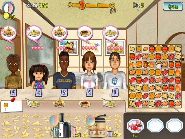 Daisy has just been appointed the new chef of Smiling Pasta! Everything was going swimmingly until Pastafast Chain shows up and decides to take over! Help her run the business and turn a tidy profit to keep the corporate goons from winning in this challenging Time Management game. Upgrade the restaurant and keep your clients content to save Smiling Pasta!