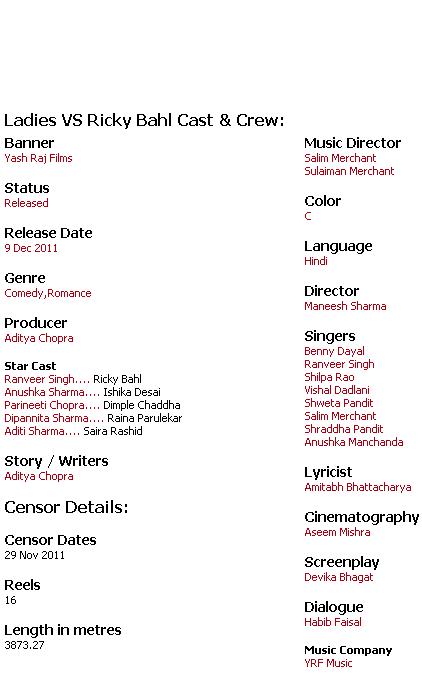Ladies Vs Ricky Bahl movie is a fun-filled rom-com where a smooth and charming conman, Ricky Bahl, cons girls for a living but finally meets his match. Dimple Chaddha, a brash 19 year old Delhi college girl falls in love with Sunny Singh, a fitness trainer. Raina Parulekar, a 28 year old independent and successful corporate woman in Mumbai does business with an art dealer Deven Shah. Saira Rashid, a 24 year old sweet, hard working widow in Lucknow makes a new friend, the shy Iqbal Khan. Three very different girls who each get taken for a lot of money by each of these three men. The problem is that it is actually just one man - Ricky Bahl who got the looks and he's got the charm. He could have the pick of the ladies. But love isn't Ricky's priority - money is! But a chance encounter unites the three girls and, discovering the truth, they hatch a plan to get their money back. So now unsuspecting Ricky is about to meet his match in the shapely form of Ishika Desai
