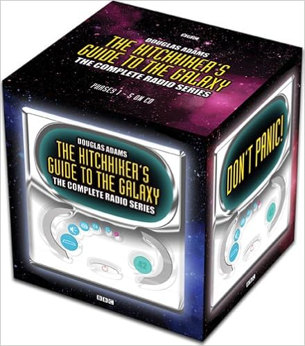 Hitchiker's Guide to the Galaxy: The complete audio CD box set. This beautiful boxed set contains the superb radio show dramatisations of all five Hitch Hiker's Guide books, all very well presented inside a magnetically sealed lift up lid. A great radio comedy SciFi series which perhaps drops a notch with the final three series made after Douglas Adams (and some of the original cast) had died. So there's no Douglas Adams working over-time updating the gags from the final three books for radio, as he did modifying the radio gags for the first & only BBC TV series to suit the visual medium. However John Lloyd, who helped out Douglas Adams with the scripts for the 1978 first series and the 1981 BBC TV season, was also involved in the later radio series and they are certainly of a high standard. As there's 27 years between the first and last season, it's no surprise that many missed the later or earlier seasons when first broadcast, so it's great for fans to get them all together in one package.