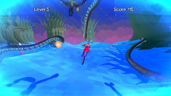 Casual runner game about escaping tentacle as cute anime girl on bicycle. Random world generation. Collect coins and achieve new levels to unlock gallery.