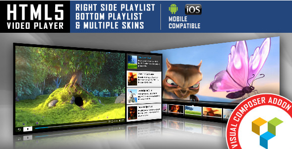 This Visual Composer Addon – HTML5 video player comes in two versions: Right Side playlist and Bottom Playlist. It plays .MP4 and .WEBM video files
