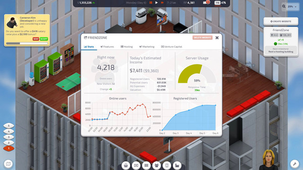 Startup Company is a business simulation sandbox game where you’re the CEO of a new company. Your job is to build your very own website and compete against the largest tech giants on the planet!