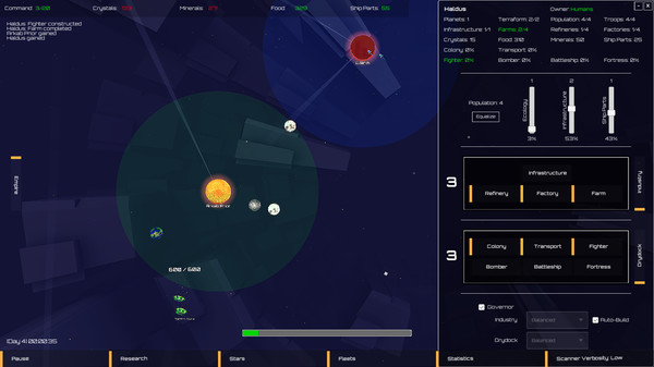 Galactic Dominion is a fast paced 4x space strategy game. Explore the stars, perform research, manage your colonies, build a fleet, defend your systems, and conquer the galaxy. Play through an epic story driven campaign or alternatively customize your games for countless re-playability!