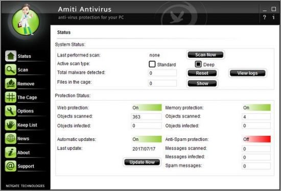 NETGATE Amiti Antivirus is a reliable and user-friendly software utility designed to provide you with the proper means to protect the security of your computer and that of the personal information you might be storing in it.