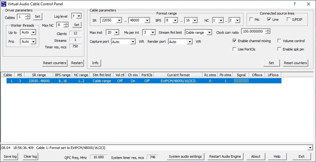 If more than one applications are sending audio to Virtual Cable device, VAC mixes all streams together. If more than one applications are receiving audio from Virtual Cable device, VAC distributes the same audio data among all targets.