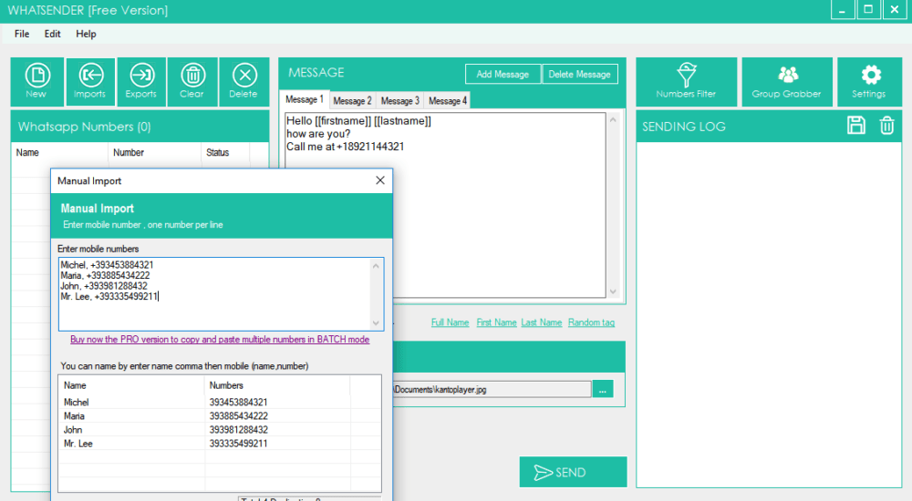 Grab Contacts from Whatsapp Groups, Post-Sending Log, Timed Sending, Numbers Filter, etc …