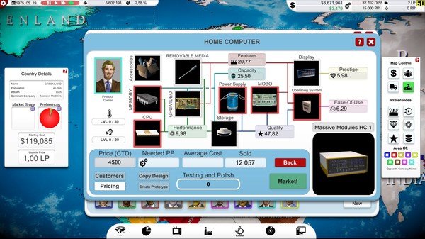 Computer Tycoon is an indie business strategy game about Computer Evolution. Start your company in the 70s. Invent until 2034, create the best hardware and operating system, upgrade your infrastructure and handle your marketing! Promote games, rule the global market and become an immortal!