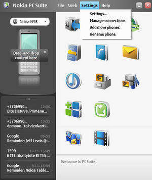 Nokia PC Suite is an application designed to enable Nokia phone owners to transfer important files from the mobile phone to the computer and vice versa, but also to control some of the handheld's features straight from the desktop.