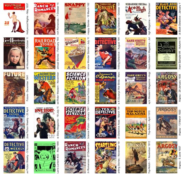 Here is a collection of 34 old pulp magazines/fanzines in PDF format with OCR and covers. Please seed for others after you download: