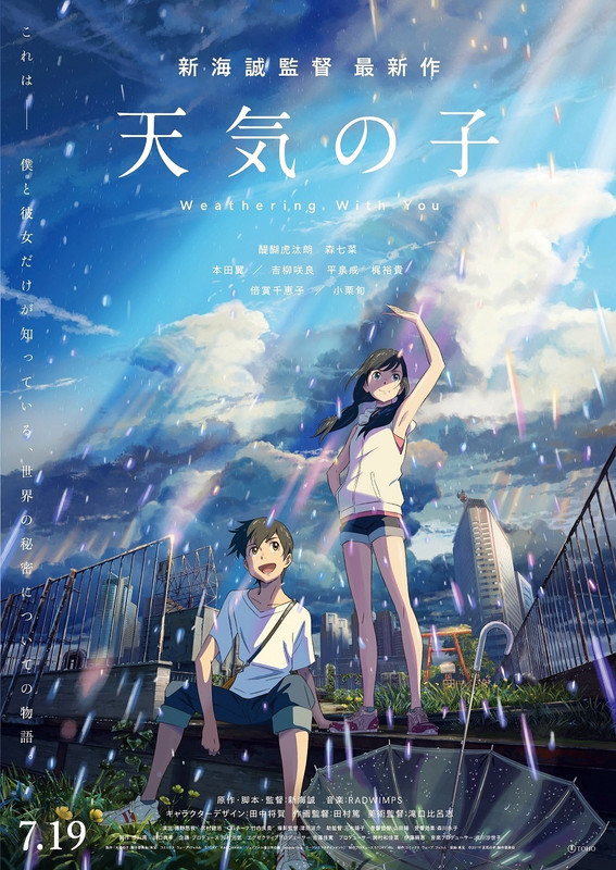 Tokyo is currently experiencing rain showers that seem to disrupt the usual pace of everyone living there to no end. Amidst this seemingly eternal downpour arrives the runaway high school student Hodaka Morishima, who struggles to financially support himself—ending up with a job at a small-time publisher. At the same time, the orphaned Hina Amano also strives to find work to sustain herself and her younger brother.