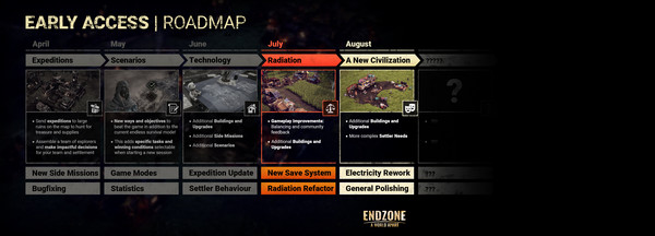 Endzone is a post-apocalyptic survival city builder, where you start a new civilization with a group of people after a global nuclear disaster. Build them a new home and ensure their survival in a shattered world, threatened by constant radiation, toxic rain, sandstorms and droughts.