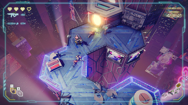 Danger Scavenger is fast-paced action, cyberpunk-themed, roguelite skyline crawler. Blow up, cut, shoot enemy robots on the roofs of skyscrapers. Choose your way to higher levels, loot, buy stuff, upgrade yourself, fight against greedy corporations, be a rebel!