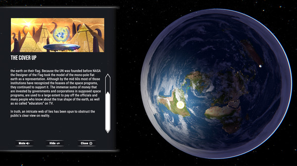 Is the earth a globe? Why do you think that? Does your everyday life confirm that fact? Explore the alternative of the Flat Earth Simulator! An interactive simulation of the day and night cycle on a flat earth with information waypoints all over the terran plane.