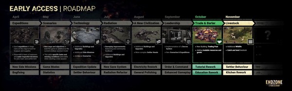 Endzone is a post-apocalyptic survival city builder, where you start a new civilization with a group of people after a global nuclear disaster. Build them a new home and ensure their survival in a shattered world, threatened by constant radiation, toxic rain, sandstorms and droughts.