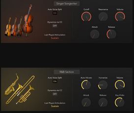 These two realistic plug-in instruments feature sophisticated articulation controls. They allow for the nuanced gestures a human performer would make when playing solo or ensemble string and brass instruments.