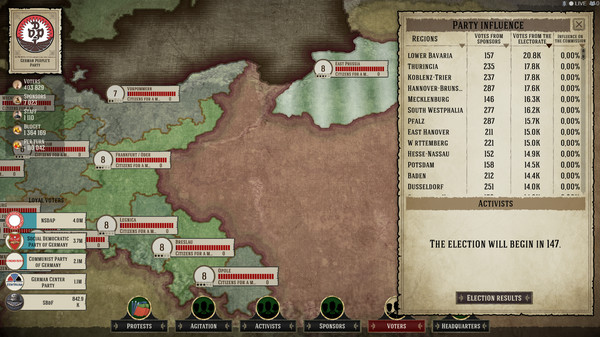 In the unique world of this political simulator, you travel to Europe, 1932-1935, to become the party leader in one of the following countries: Germany, France, or England. You have a real chance to become the winner of WWII even before it begins...