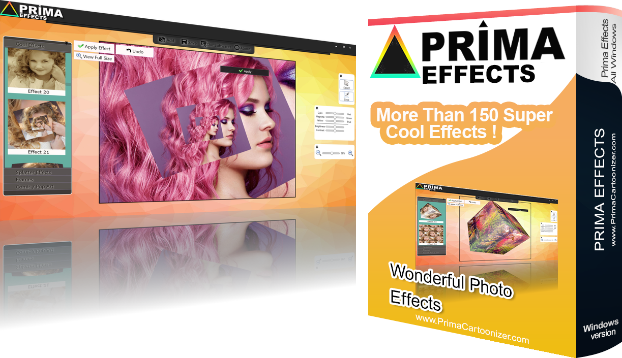 Prima Effects Software - More than 150 Super Cool Photo Effects! Make your photos more interesting with Prima Effects! Enjoy many super cool effects with our software designed for windows desktop PC!