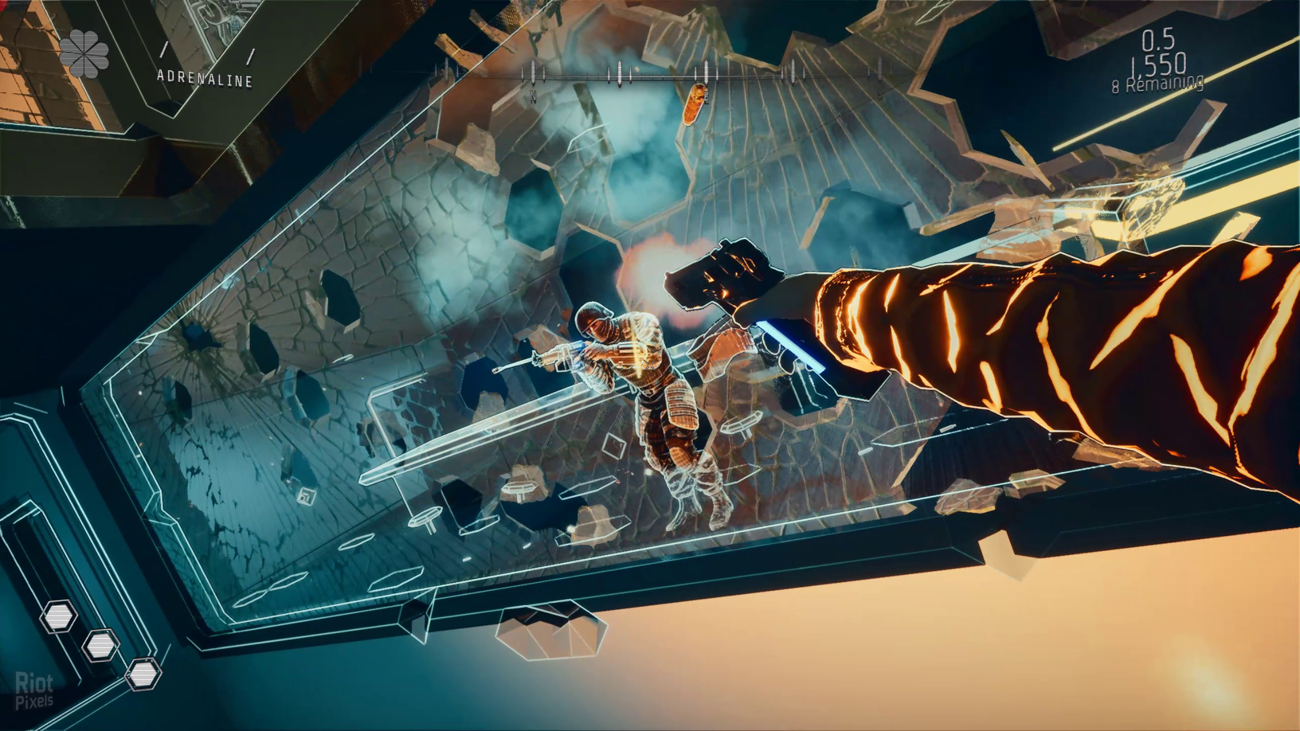 Severed Steel is a single-player FPS featuring a fluid stunt system, destructible voxel environments, loads of bullet time, and a unique one-armed protagonist. It's you, your trigger finger, and a steel-toed boot against a superstructure full of bad guys. Chain together wall runs, dives, flips, and slides to take every last enemy down.