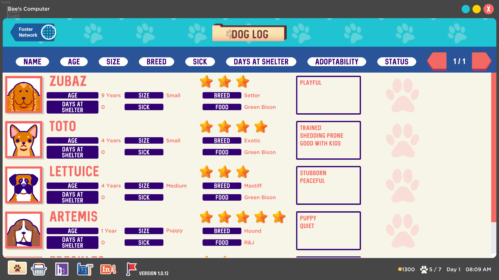 Each day brings new challenges and rewards. Dogs have specific preferences, can get infectious diseases, and can have negative traits. But you can also hold fundraisers, get random donations, and, if you work hard, help someone find their new best friend. Unfortunately, there's never enough room, and always more dogs.