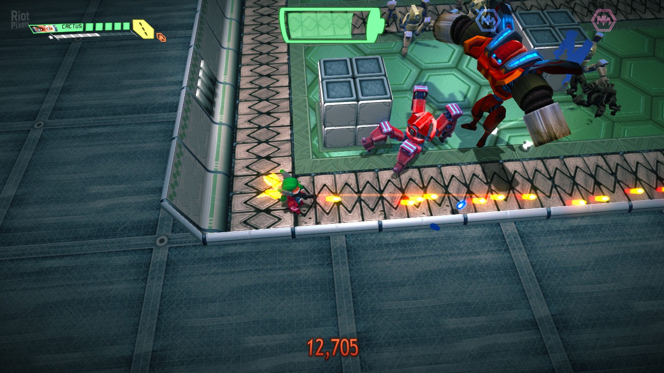 Assault Android Cactus+ is an arcade style twin stick shooter set in a vivid sci fi universe. Junior Constable Cactus is outside her pay grade when she responds to a distress call and ends up stranded on a crippled space freighter under attack by its own robot workers.