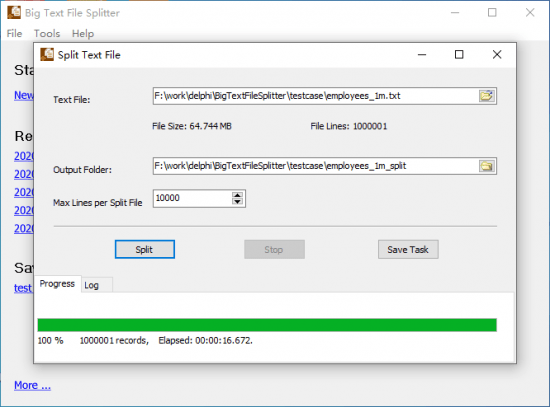 BigTextFileSplitter, Split Big Text File To Smaller Files. BigTextFileSplitter is a software that helps you to split big text file to smaller text files. It can work for CSV file, TSV file, JSON Lines file, log file, and other types.