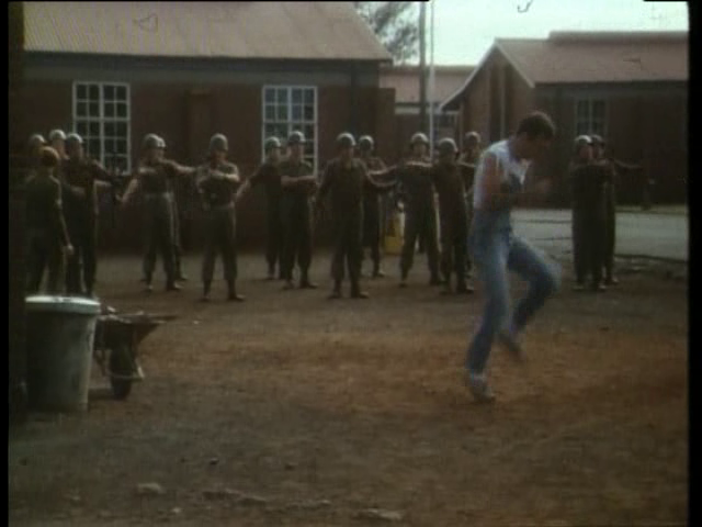 1980s South African action comedy shot mostly in Afrikaans, one of South Africa's 11 indigenous languages. The main character, played by Arnold Vosloo, is a spoilt young man from a rich family, just finished with school, and conscripted to two years' army service, as most defensible young men were forced to do in the '80s. The movie revolves around the young rebel's anti-establishment antics in frustrating his superiors, trying to avoid military service with his new-found comrades-at-arms, and charming an inquisitive spiky-haired reporter (Janie du Plessis).