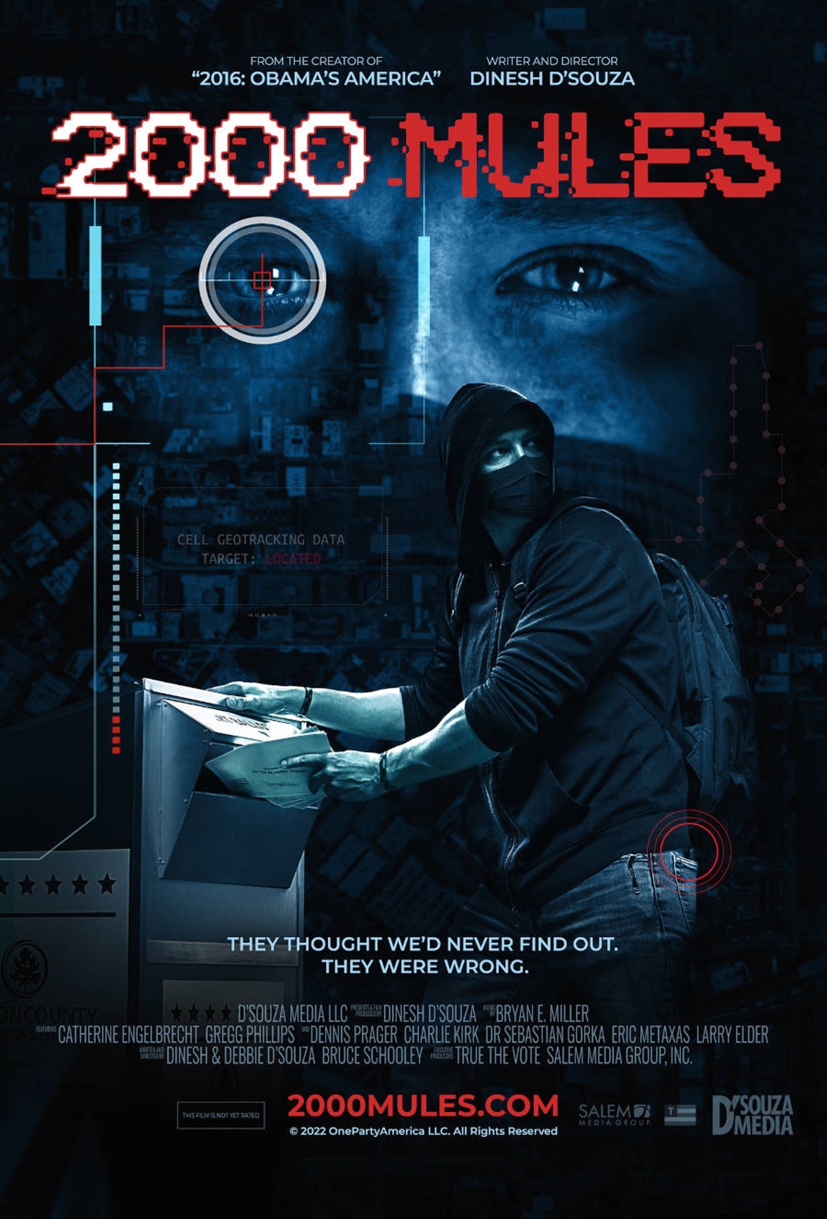 “2000 Mules,” a documentary film created by Dinesh D’Souza, exposes widespread, coordinated voter fraud in the 2020 election, sufficient to change the overall outcome. Drawing on research provided by the election integrity group True the Vote, “2000 Mules” offers two types of evidence: geotracking and video. The geotracking evidence, based on a database of 10 trillion cell phone pings, exposes an elaborate network of paid professional operatives called mules delivering fraudulent and illegal votes to mail-in dropboxes in the five key states where the election was decided. Video evidence, obtained from official surveillance cameras installed by the states themselves, confirms the geotracking evidence. The movie concludes by exploring numerous ways to prevent the fraud from happening again.