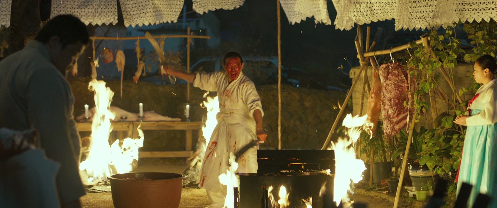Set in a small, rainy rural Korean town, the story concerns a cop who starts investigating a number of unexplained murders where people seemingly lost their mind and killed their families and neighbors. Soon, however, clues point to a mysterious Japanese tourist who's recently arrived in the area, and more worryingly, the protagonist's young daughter begins showing signs of supernatural infection. A local shaman is consulted, rituals are performed, but things go from bad to worse, and it's not at all clear who can be trusted and who's really a threat.