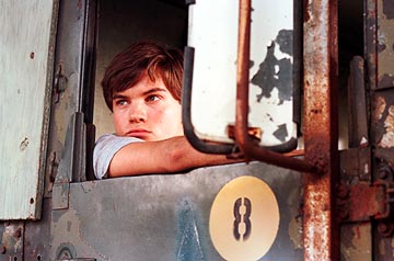 Duncan, who is 15 or 16, has no friends as the story opens, but makes one: Perry (Tom Guiry), a neighbor, who is friendlier to him than the other local boys. One day at the swimming hole Duncan reaches out to feel the muscles in Perry's arm, and Perry recoils as if stung. But the touch sets something into motion between them. We think at first it may be Duncan's discovery that he is gay, but we're getting ahead of the plot, and Duncan may not be gay at all. Perry, the macho tough kid with the swagger, is another story.