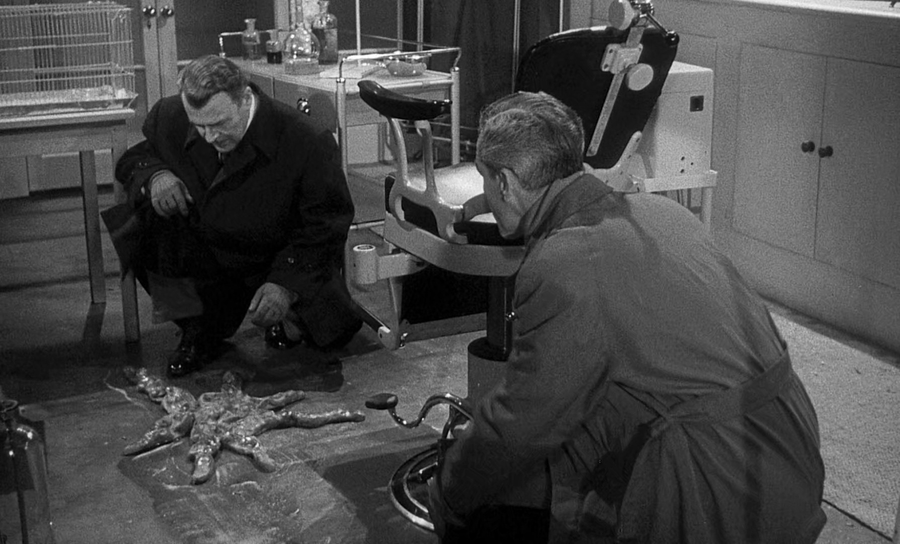 A rocket designed by Professor Quatermass crashes back to Earth, but only one of the crew of three is still on board and barely alive, the other two are nowhere to be found, although their empty space suits are still strapped into their seats. Carroon, the surviving astronaut, is catatonic but seemingly aware, and is taken to a lab for care. Film from the mission show the ship being rocked by some external force, and then the astronauts react with fear to something unseen, which causes them to pass out. It turns out Carroon is being slowly mutated into something alien by an organism that's infected him, and when his wife conspires to break him out of the lab, the only thing that stands between the alien menace and the Queen's loyal subjects is Professor Quatermass and his staunch British rationality in face of danger.