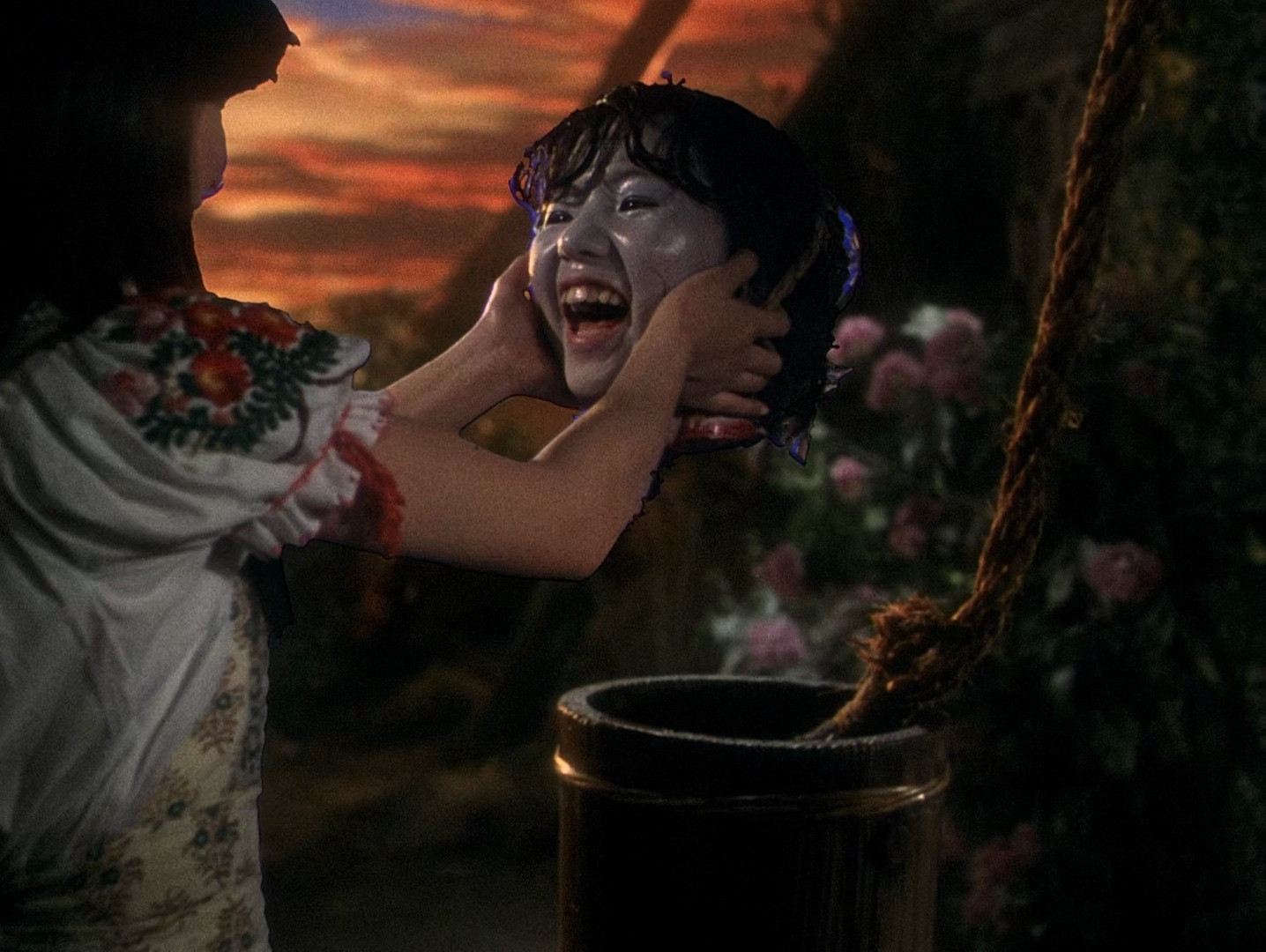 Note : Perhaps the most baffling piece of cinema ever made, Nobuhiko Obayashi's Hausu started out when Toho approached him to make a film similar to Jaws. He consulted with his young daughter for plot ideas, and came up with this, which is... not similar to Jaws. At all. But it has some amazingly surreal sequences, cheerfully shitty bluescreen effects, amateur actors doing their absolute best as characters with ridiculous names, visual effects created by just putting hand-drawn animation on top of the live-action shots, and a story that has to be experienced to be believed. It's a horror comedy, although it's not really scary, but definitely extremely memorable.