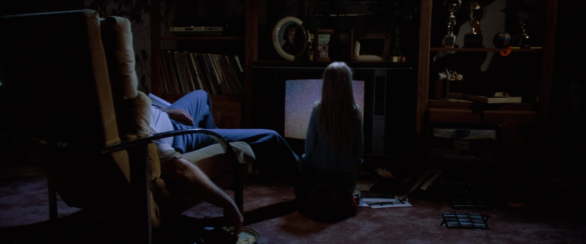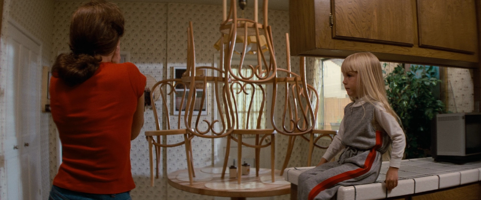 The Freeling family are living in a suburban California development that father Steve helped build and sell, and their days are amenable, with mother Diane taking care of the three kids. However, small strange events start occurring within the house, and youngest daughter Carol Anne has a habit of talking to the TV when there's only static on. After a strangely localized earthquake, the events intensify, with objects moving and breaking on their own, and when a tree crashes through the window and seemingly grabs middle child Robbie, trying to devour him before it gets pulled into the sky in a freak tornado, Carol Anne disappears mysteriously from her bedroom. A group of paranormal investigators are called in, and they diagnose the problem as poltergeist activity, while Carol Anne's voice can be heard from the TV, and the family must fight to get their daughter back.