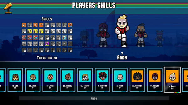 Pixel Cup Soccer is a retro-style arcade game. Play friendly matches, tournaments or create your team and lead it to glory in career mode! You can play it alone or with up to 8 friends, locally or through Steam remote, you can choose whether to play competitively, cooperatively, or even both!