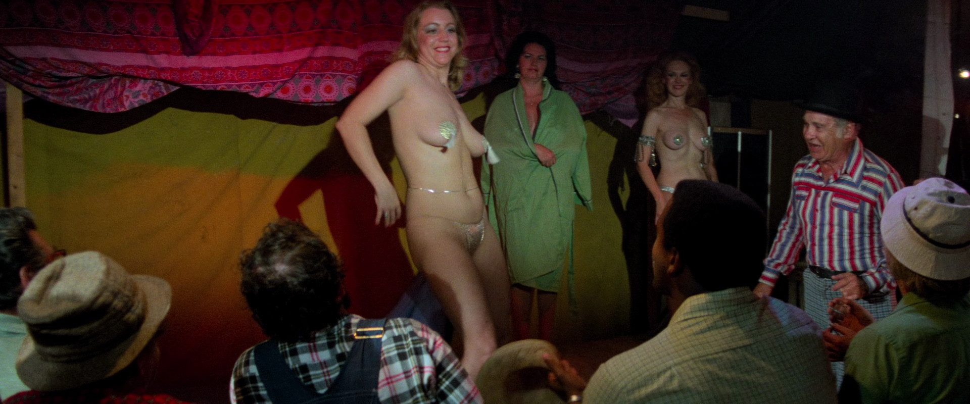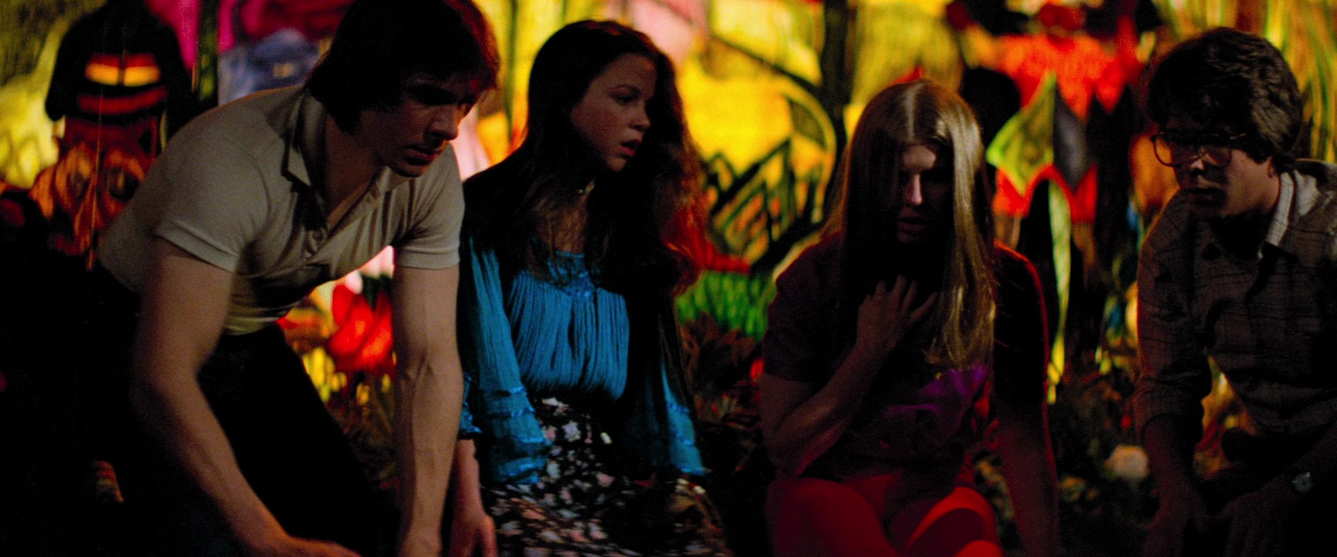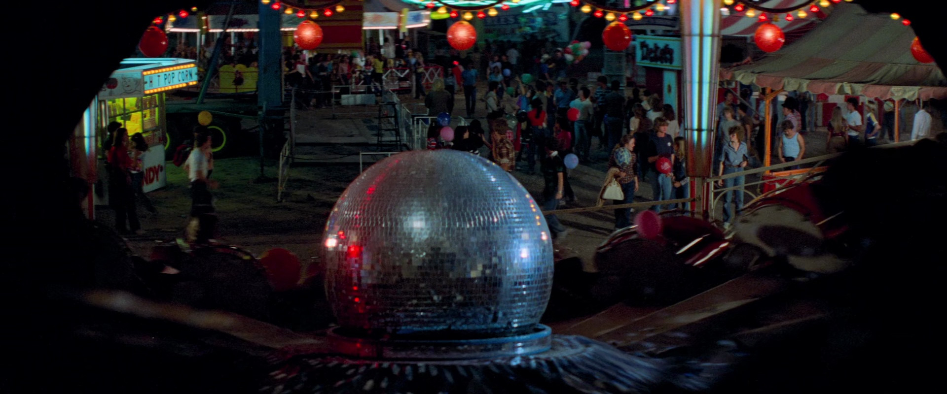 Amy goes out on a double date with a new potential boyfriend and their friends, and they visit a traveling carnival, against Amy's parents' wishes, since murders have happened where the carnival has been visiting. After messing around and getting high, getting their fortune told, peeping at a strip show, and viewing a selection of freaks, they go on a dark ride in "The Funhouse", where they decide to jump off the cars and stay the night to have sex. While there, they witness a deformed carny paying for sex with and then murdering the fortuneteller, and they end up being chased through the (surprisingly huge) funhouse by the carny and his barker father, who will do anything to protect their secret.