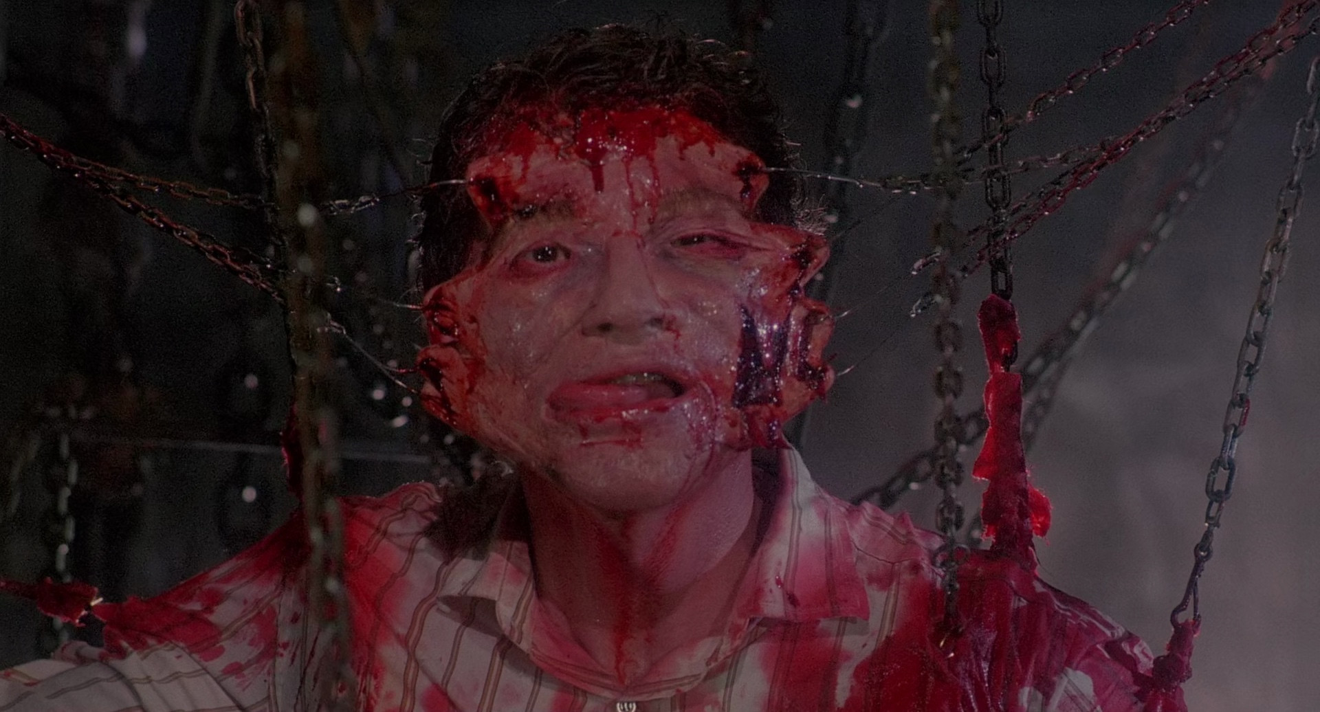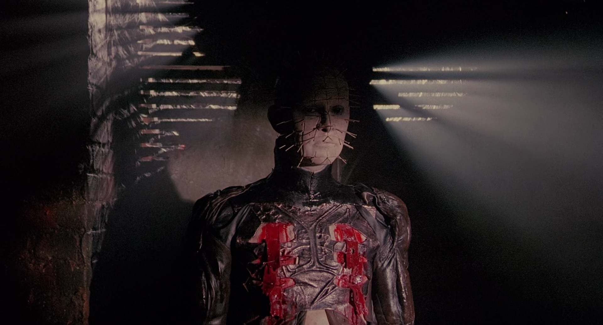 This Arrow Scarlet Box Special Edition remaster is the best version that exists of this film, but it's not fantastic. Dynamic range is a bit limited, and the grain is very prominent and highly variable. I've done some noise reduction to bring it to more manageable levels, and then did this relatively high-bitrate encode to preserve what's left. There's been rumors for year of a real 4k remaster from the original negative (this seems to be from an internegative), but nothing has emerged from the Cenobite dimension yet, so in the meantime, this is as good as it gets. The 5.1 remaster sounds good, and the commentary track with Barker and Ashley Laurence is well worth the time.