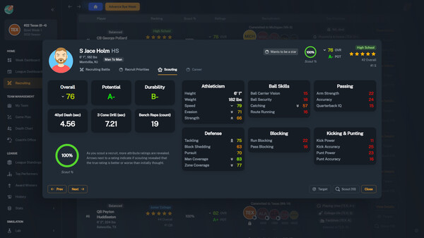 A true college football management game. Play as a coach or a school, recruit players, develop your team, and compete for national championships. Build a college football dynasty and become a coaching legend!