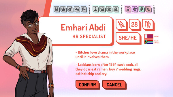 ValiDate is a romantic visual novel about 13 adults in Jercy City navigating new relationships and the harsh realities that come alongside them.